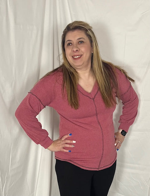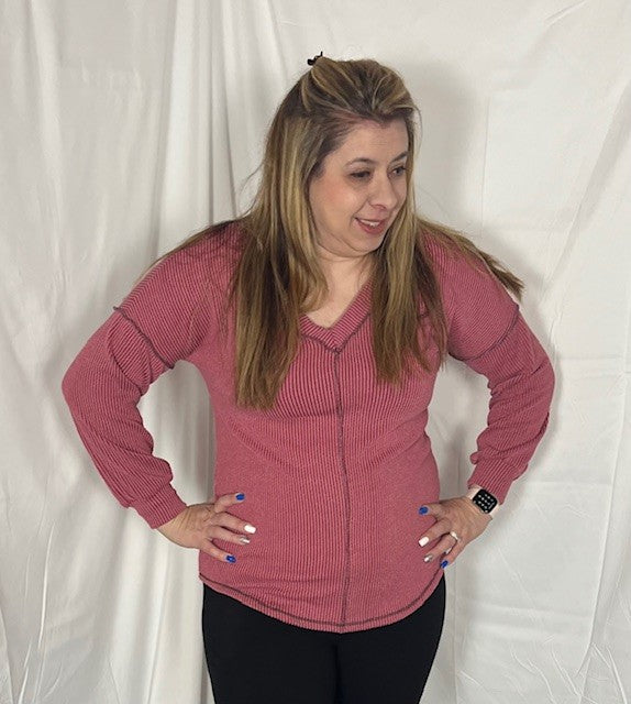 Oversized, v neckline, ribbed material